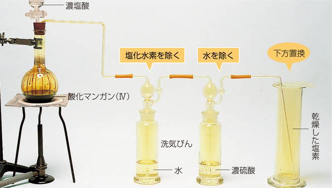 そこで、1810年にイギリスの化学者ハンフリー・デービーは、「塩素Cl2は酸素Oを含まない単体である」と考えて、気体が黄緑色(ギリシア語でchloros)であったことから、その元素を「塩素(chlorine)」と命名しました。塩素Cl2と水素H2を混合して火花を飛ばすと塩酸HClが合成できることから、「塩酸HClには酸素Oは含まれない」と考えられるようになりました。こうして、酸素原子Oを含まない酸もあることが分かったのです。